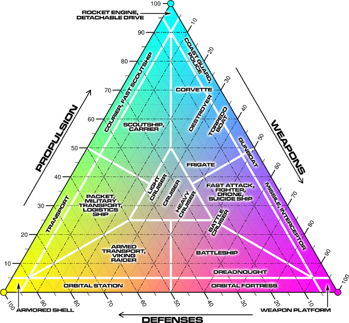 | Battleship | Capital ship built around defense, generally intended to operate in a flotilla and take on the brunt of an enemy's assault. |
